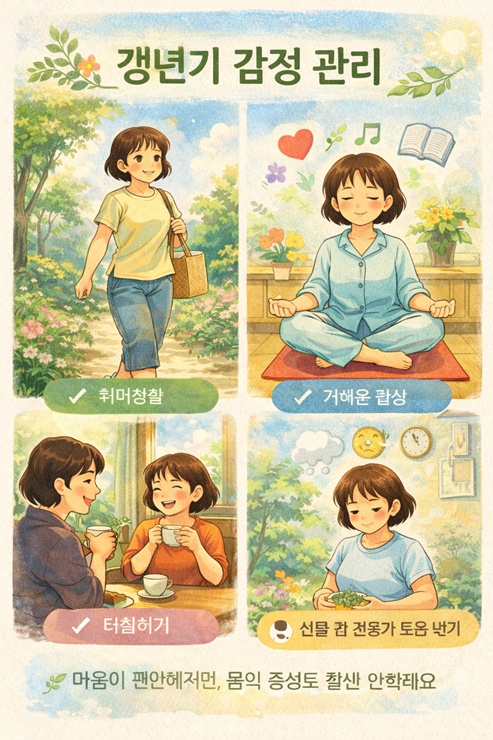 꾸준한 관리와 긍정적인 마음가짐, 이 두 가지가 갱년기를 부드럽게 지나가는 가장 좋은 방법이 아닐까 싶습니다.